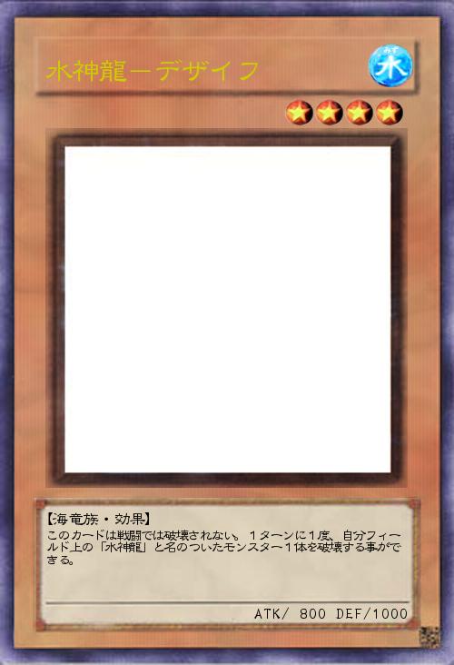 | このカードは戦闘では破壊されない。1ターンに1度、自分フィールド上の「水神龍」と名のついたモンスター1体を破壊する事ができる。 | |||
