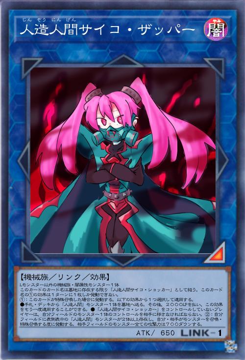 | Lモンスター以外の機械族・闇属性モンスター1体 このカードのカード名は墓地に存在する限り「人造人間サイコ・ショッカー」として扱う。このカード名の①の効果は1ターンに1枚しか発動できない。 ①:このカードが特殊召喚した場合に発動する。以下の効果から1つ選択して適用する。 ●手札・デッキから「人造人間」モンスター1体を墓地へ送る。その後、2000LPを払い、この効果をもう一度適用することができる。●「人造人間サイコ・ショッカー」をコントロールしていないプレイヤーは、自分フィールドのモンスター1体のコントロールを相手に移さなければならない。②:自分フィールドに表側表示の「人造人間」モンスターが2体以上存在し、自分・相手がモンスターを召喚・特殊召喚する度に発動する。相手フィールドのモンスター全ての攻撃力は700ダウンする。 | |||