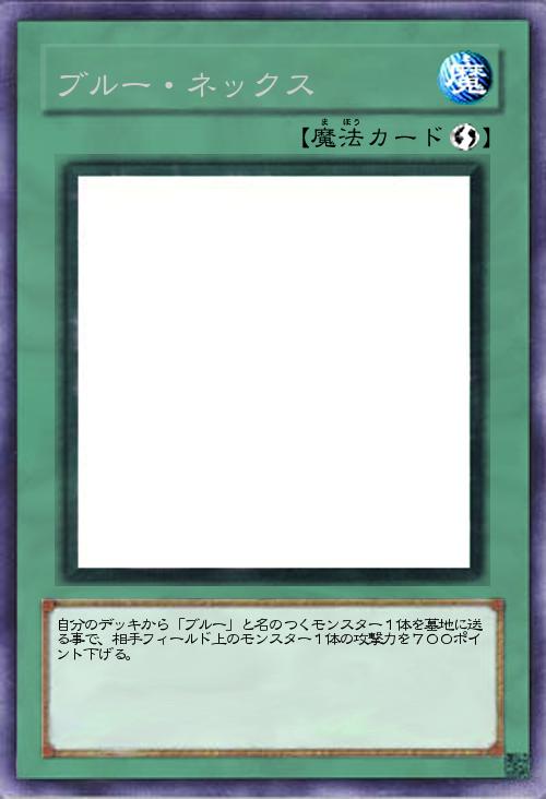 | 自分のデッキから「ブルー」と名のつくモンスター1体を墓地に送る事で、相手フィールド上のモンスター1体の攻撃力を700ポイント下げる。 | |||