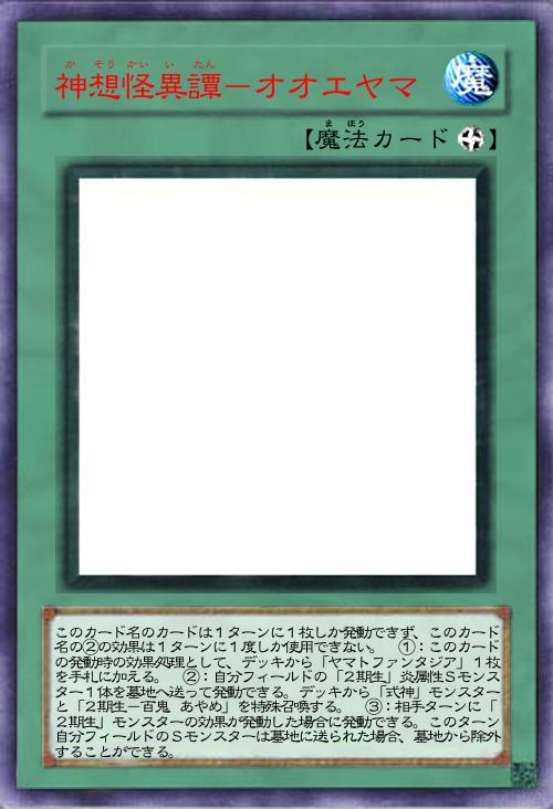 | このカード名のカードは1ターンに1枚しか発動できず、このカード名の②の効果は1ターンに1度しか使用できない。 ①:このカードの発動時の効果処理として、デッキから「ヤマトファンタジア」1枚を手札に加える。 ②:自分フィールドの「2期生」炎属性Sモンスター1体を墓地へ送って発動できる。デッキから「式神」モンスターと「2期生-百鬼 あやめ」を特殊召喚する。 ③:相手ターンに「2期生」モンスターの効果が発動した場合に発動できる。このターン自分フィールドのSモンスターは墓地に送られた場合、墓地から除外することができる。 | |||