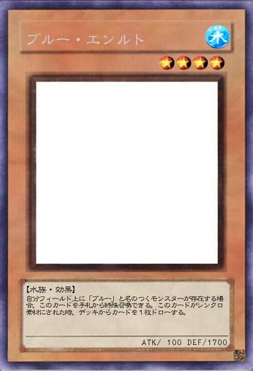 | 自分フィールド上に「ブルー」と名のつくモンスターが存在する場合、このカードを手札から特殊召喚できる。このカードがシンクロ素材にされた時、デッキからカードを1枚ドローする。 | |||