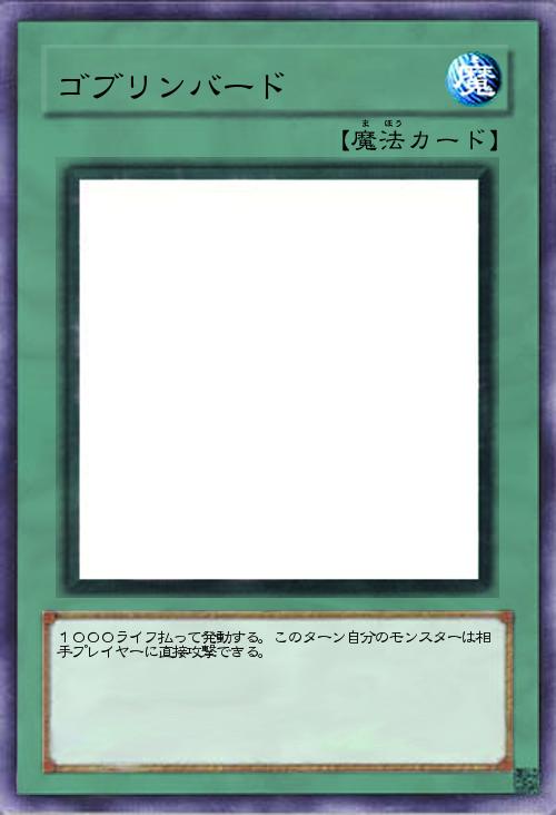 | 1000ライフ払って発動する。このターン自分のモンスターは相手プレイヤーに直接攻撃できる。 | |||