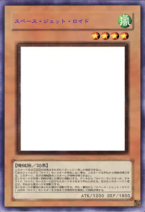 | このカード名の①②③の効果はそれぞれ1ターンに1度しか使用できない。 ①自分フィールドに「ロイド」モンスターが存在しない場合、このカードは手札から特殊召喚できる。このターン、自分は機械族モンスターしか特殊召喚できない。 ②このカードが召喚・特殊召喚した場合に発動できる。デッキから「ロイド」モンスターか、テキストに「ロイド」モンスターと記されたカードを2枚まで手札に加える。自分はこのターンに1度だけ、手札から罠カードを発動できる。 ③このカードが墓地に送られた場合に発動できる。手札・墓地から「スペース・ジェット・ロイド」以外の「ロイド」モンスターを2体まで召喚条件を無視して特殊召喚する。 | |||