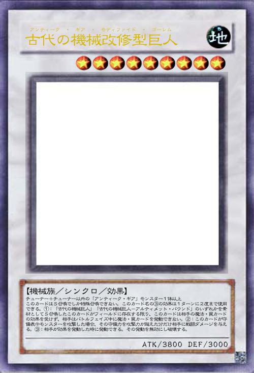 | チューナー+チューナー以外の「アンティーク・ギア」モンスター1体以上 このカードはS召喚でしか特殊召喚できない。このカード名の③の効果は1ターンに2度まで使用できる。①:「古代の機械巨人」「古代の機械巨人-アルティメット・パウンド」のいずれかを素材としてS召喚したこのカードがフィールドに存在する限り、このカードは相手の魔法・罠カードの効果を受けず、相手はバトルフェイズ中に魔法・罠カードを発動できない。②:このカードが守備表示モンスターを攻撃した場合、その守備力を攻撃力が超えた分だけ相手に戦闘ダメージを与える。③:相手が効果を発動した時に発動できる。その発動を無効にし破壊する。 | |||