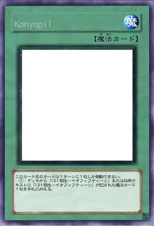 | このカード名のカードは1ターンに1枚しか発動できない。 ①:デッキから「ID1期生-イオフィフティーン」または効果テキストに「ID1期生-イオフィフティーン」が記された魔法カード1枚を手札に加える。 | |||