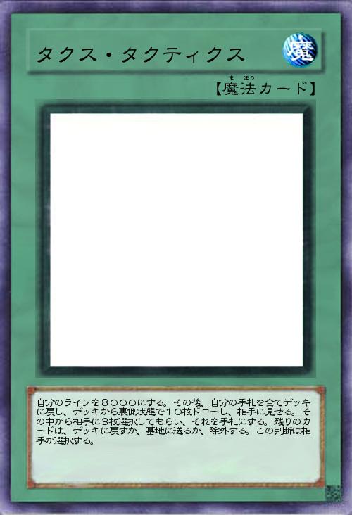 | 自分のライフを8000にする。その後、自分の手札を全てデッキに戻し、デッキから裏側状態で10枚ドローし、相手に見せる。その中から相手に3枚選択してもらい、それを手札にする。残りのカードは、デッキに戻すか、墓地に送るか、除外する。この判断は相手が選択する。 | |||