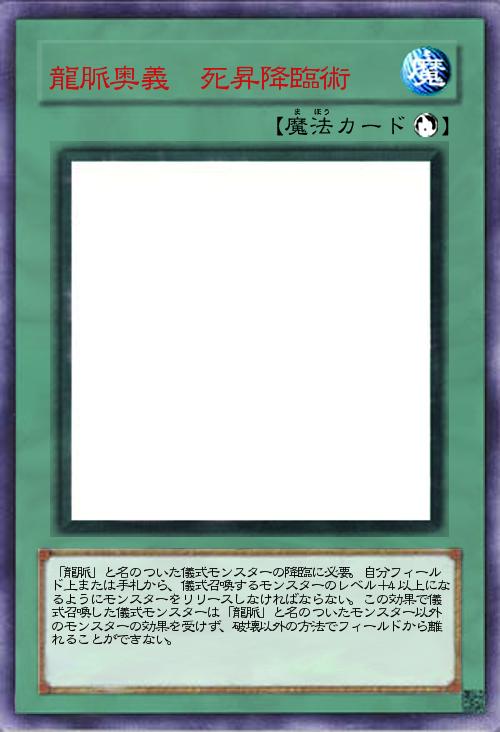 | 「龍脈」と名のついた儀式モンスターの降臨に必要。自分フィールド上または手札から、儀式召喚するモンスターのレベル+4以上になるようにモンスターをリリースしなければならない。この効果で儀式召喚した儀式モンスターは「龍脈」と名のついたモンスター以外のモンスターの効果を受けず、破壊以外の方法でフィールドから離れることができない。 | |||