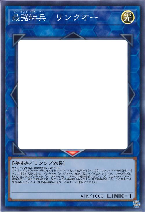 | サイバース族または戦士族モンスター1体 このカード名の①②の効果はそれぞれ1ターンに1度しか使用できない。①:このカードが特殊召喚に成功した場合に発動できる。デッキから「リンクオー」魔法・罠カード1枚をセットする。この効果の発動後、自分はEXデッキから「リンクオー」モンスターしか特殊召喚できない。②:自分がモンスターが特殊召喚した場合に発動できる。EXデッキから機械族L1モンスター1体を特殊召喚する。この効果で特殊召喚したモンスターは効果が無効となり、このターンL素材にできない。 | |||