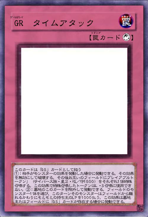 | このカードは「GS」カードとして扱う ①:相手がモンスターの効果を発動した場合に発動できる。その効果を無効にして破壊する。その後お互いのフィールドにプレイアブルトークン」(サイバース族・星2・攻/守1500)をそれぞれ1体特殊召喚する。この効果で特殊召喚したトークンはL・S召喚に使用できない。②:墓地のこのカードを除外して発動できる。フィールドのモンスター1体を選び、このターンそのモンスターはフィールドから離れるかわりにもともとの持ち主のLPを1000払う。この効果は墓地またはフィールドに「GS」カードが存在する場合に発動できる。 | |||