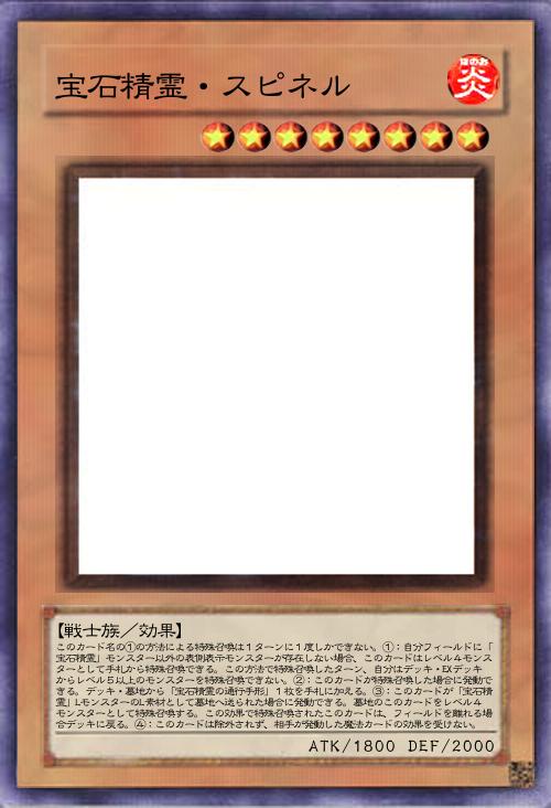 | このカード名の①の方法による特殊召喚は1ターンに1度しかできない。①:自分フィールドに「宝石精霊」モンスター以外の表側表示モンスターが存在しない場合、このカードはレベル4モンスターとして手札から特殊召喚できる。この方法で特殊召喚したターン、自分はデッキ・EXデッキからレベル5以上のモンスターを特殊召喚できない。②:このカードが特殊召喚した場合に発動できる。デッキ・墓地から「宝石精霊の通行手形」1枚を手札に加える。③:このカードが「宝石精霊」LモンスターのL素材として墓地へ送られた場合に発動できる。墓地のこのカードをレベル4モンスターとして特殊召喚する。この効果で特殊召喚されたこのカードは、フィールドを離れる場合デッキに戻る。④:このカードは除外されず、相手が発動した魔法カードの効果を受けない。 | |||