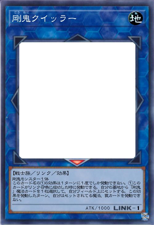 | 剛鬼モンスター1体 このカード名の①の効果は1ターンに1度でしか発動できない。①このカードがリンク召喚に成功した時に発動できる。自分の墓地から「剛鬼」魔法カードを1枚選択して、自分フィールド上にセットする。この効果を発動したターン、自分はセットされてる魔法、罠カードを発動できない。 | |||