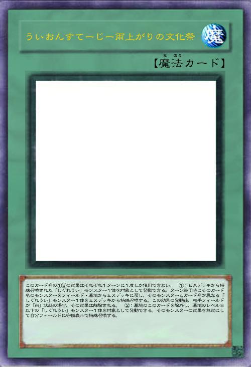 | このカード名の①②の効果はそれぞれ1ターンに1度しか使用できない。 ①:EXデッキから特殊召喚された「しぐれうい」モンスター1体を対象として発動できる。ターン終了時にそのカード名のモンスターをフィールド・墓地からEXデッキに戻し、そのモンスターとカード名が異なる「しぐれうい」モンスター1体をEXデッキから特殊召喚する。この効果の発動後、相手フィールドが「雨」状態の場合、その効果は解除される。 ②:墓地のこのカードを除外し、墓地のレベル8以下の「しぐれうい」モンスター1体を対象として発動できる。そのモンスターの効果を無効にして自分フィールドに守備表示で特殊召喚する。 | |||