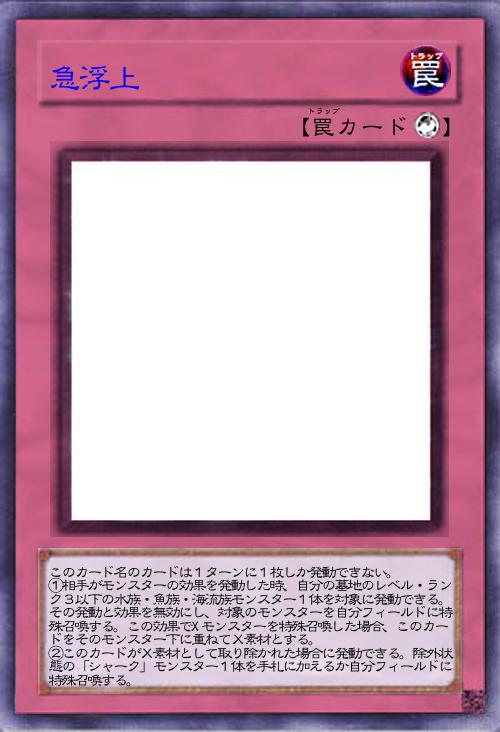 | このカード名のカードは1ターンに1枚しか発動できない。 ①相手がモンスターの効果を発動した時、自分の墓地のレベル・ランク3以下の水族・魚族・海流族モンスター1体を対象に発動できる。その発動と効果を無効にし、対象のモンスターを自分フィールドに特殊召喚する。この効果でXモンスターを特殊召喚した場合、このカードをそのモンスター下に重ねてX素材とする。 ②このカードがX素材として取り除かれた場合に発動できる。除外状態の「シャーク」モンスター1体を手札に加えるか自分フィールドに特殊召喚する。 | |||