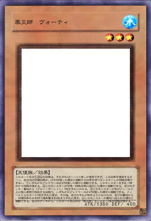 | このカード名の①③④の効果は、それぞれ1ターンに1度しか使用できず、この効果を使用するターン、自分はLP回復効果か、LPが回復した場合に発動する効果を持つモンスターしか特殊召喚できない。①いずれかのプレイヤーのLPが回復した場合に発動できる。このモンスターを手札・除外から特殊召喚する。②このモンスターが召喚・特殊召喚に成功した場合に発動できる。自分のデッキ・墓地から「ブルー・ポーション」1枚を手札に加える。③このモンスターが自分フィールド上に既に表側で存在する状態で、いずれかのプレイヤーのLPが回復した場合に発動できる。フィールド上のカード1枚を手札に戻す。その後、自分の手札が相手より少なければ、自分の墓地から、回復効果のみを持つ通常魔法を2枚まで手札に戻す。④このモンスターが墓地へ送られた場合に発動できる。自分のデッキから、このカード名以外の「薬災師」モンスター1体を特殊召喚する。 | |||