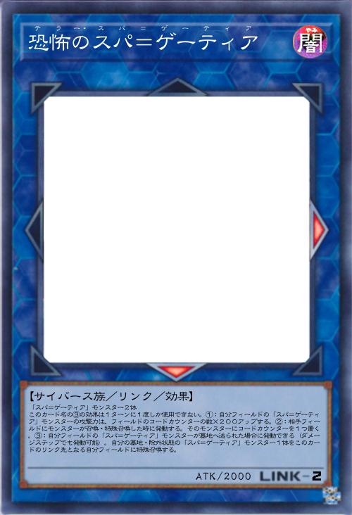| 「スパ=ゲーティア」モンスター2体 このカード名の③の効果は1ターンに1度しか使用できない。①:自分フィールドの「スパ=ゲーティア」モンスターの攻撃力は、フィールドのコードカウンターの数×200アップする。②:相手フィールドにモンスターが召喚・特殊召喚した時に発動する。そのモンスターにコードカウンターを1つ置く。③:自分フィールドの「スパ=ゲーティア」モンスターが墓地へ送られた場合に発動できる(ダメージステップでも発動可能)。自分の墓地・除外状態の「スパ=ゲーティア」モンスター1体をこのカードのリンク先となる自分フィールドに特殊召喚する。 | |||