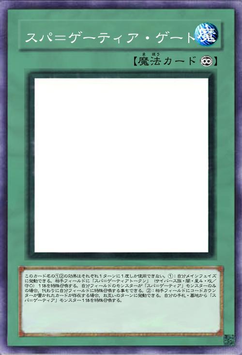 | このカード名の①②の効果はそれぞれ1ターンに1度しか使用できない。①:自分メインフェイズに発動できる。相手フィールドに「スパ=ゲーティアトークン」(サイバース族・闇・星4・攻/守0)1体を特殊召喚する。自分フィールドのモンスターが「スパ=ゲーティア」モンスターのみの場合、代わりに自分フィールドに特殊召喚する事もできる。②:相手フィールドにコードカウンターが置かれたカードが存在する場合、お互いのターンに発動できる。自分の手札・墓地から「スパ=ゲーティア」モンスター1体を特殊召喚する。 | |||
