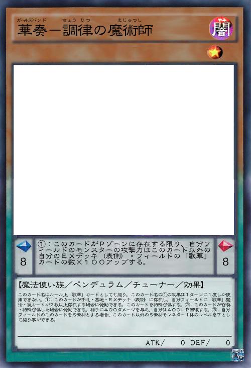 | ①:このカードがPゾーンに存在する限り、自分フィールドのモンスターの攻撃力はこのカード以外の自分のEXデッキ(表側)・フィールドの「歌華」カードの数×100アップする。 | |||