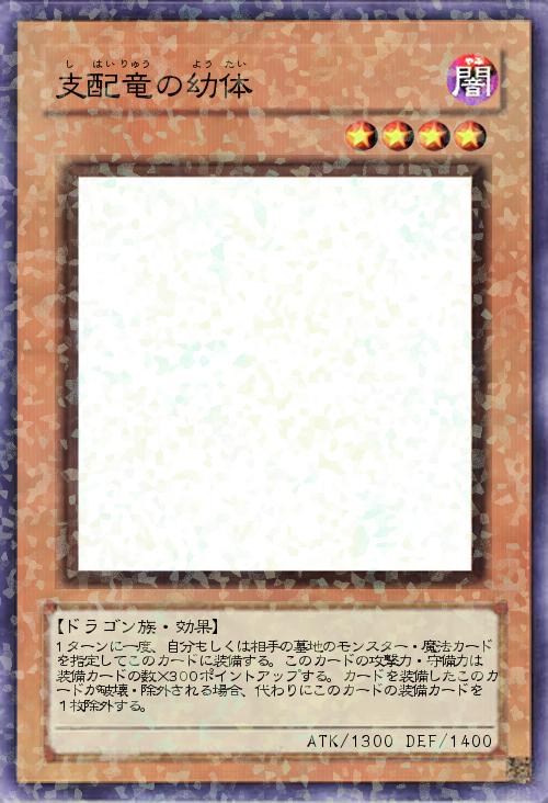 | 1ターンに一度、自分もしくは相手の墓地のモンスター・魔法カードを指定してこのカードに装備する。このカードの攻撃力・守備力は装備カードの数×300ポイントアップする。カードを装備したこのカードが破壊・除外される場合、代わりにこのカードの装備カードを1枚除外する。 | |||