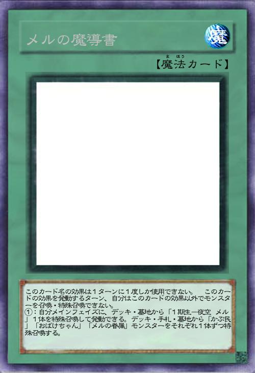 このカードの効果でしか特殊召喚できなくなる縛りがきついですが、メル自体は墓地送られると装備カードになるだけなので効果は使えます。