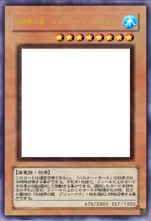 | このカードは通常召喚できない。「バスター・モード」の効果でのみ特殊召喚する事ができる。手札を1枚捨て、フィールド上のカードを任意の枚数選択して発動する事ができる。選択したカードを持ち主の手札に戻す。フィールド上のこのカードが破壊された時、自分の墓地の「氷結界の龍 ブリューナク」1体を選択し特殊召喚する事ができる。 | |||