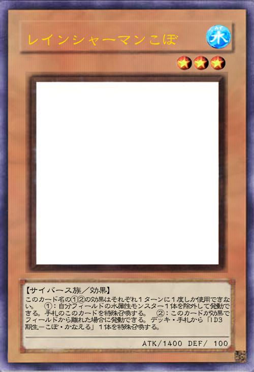 | このカード名の①②の効果はそれぞれ1ターンに1度しか使用できない。 ①:自分フィールドの水属性モンスター1体を除外して発動できる。手札のこのカードを特殊召喚する。 ②:このカードが効果でフィールドから離れた場合に発動できる。デッキ・手札から「ID3期生-こぼ・かなえる」1体を特殊召喚する。 | |||