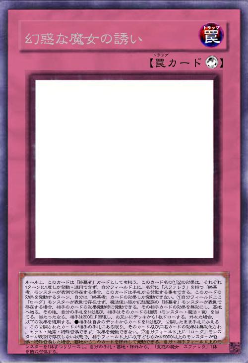 | ルール上、このカードは「終幕者」カードとしても扱う。このカード名の①②の効果は、それぞれ1ターンに1度しか発動・適用できず、自分フィールド上に、名前に「スファレラ」を持つ「終幕者」モンスターが表側で存在する場合、このカードは手札から発動する事もできる。このカードの効果を発動するターン、自分は「終幕者」カードの効果しか発動できない。①自分フィールド上に「ローグ」モンスターが表側で存在せず、魔法使い族か幻想魔族の「終幕者」モンスターが表側で存在する場合、相手のカードの効果発動時に発動できる。その相手カードの効果を無効にし、墓地へ送る。その後、自分の手札を1枚選び、相手はそのカードの種類(モンスター・魔法・罠)を当てる。当たったなら、相手は2000LP回復し、お互いにデッキから1枚ドローする。外れた場合、以下の効果を適用する。●相手は自身のデッキからカードを1枚選び、公開したまま手札に加える。この公開されたカードが相手の手札にある限り、そのカード及び同名カードの効果は無効化され、セット・通常・特殊召喚できず、効果を発動できない。②自分フィールド上に「ローグ」モンスターが表側で存在しない状態で、相手フィールド上に攻守どちらかが2000以上のモンスターが召喚・特殊召喚した場合、墓地からこのカードを除外して発動できる。自分・相手フィールド上のモンスターを1体ずつリリースし、自分の手札・墓地・除外から、「重惑の魔女 スファレラ」1体を儀式召喚する。 | |||