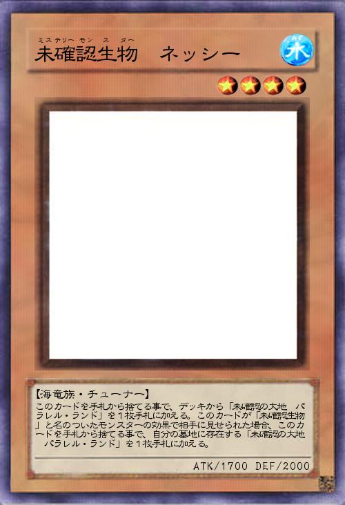 | このカードを手札から捨てる事で、デッキから「未確認の大地 パラレル・ランド」を1枚手札に加える。このカードが「未確認生物」と名のついたモンスターの効果で相手に見せられた場合、このカードを手札から捨てる事で、自分の墓地に存在する「未確認の大地 パラレル・ランド」を1枚手札に加える。 | |||