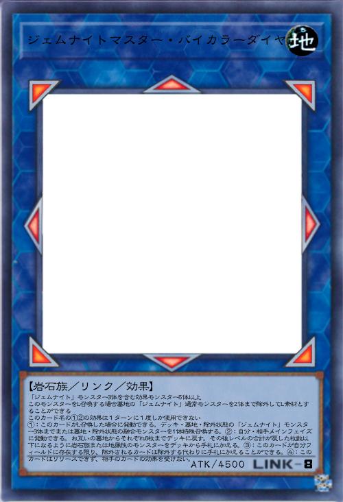 | 「ジェムナイト」モンスター3体を含む効果モンスター5体以上 このモンスターをL召喚する場合墓地の「ジェムナイト」通常モンスターを2体まで除外してL素材とすることができる このカード名の①②の効果は1ターンに1度しか使用できない ①:このカードがL召喚した場合に発動できる。デッキ・墓地・除外状態の「ジェムナイト」モンスター3体までまたは墓地・除外状態の融合モンスターを1体特殊召喚する。②:自分・相手メインフェイズに発動できる。お互いの墓地からそれぞれ6枚までデッキに戻す。その後レベルの合計が戻した枚数以下になるように岩石族または地属性のモンスターをデッキから手札に加える。③:このカードが自分フィールドに存在する限り、除外されるカードは除外する代わりに手札に加えることができる。④:このカードはリリースできず、相手のカードの効果を受けない。 | |||