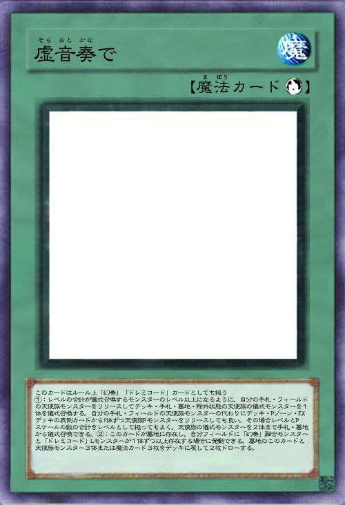 | このカードはルール上「幻奏」「ドレミコード」カードとしても扱う ①:レベルの合計が儀式召喚するモンスターのレベル以上になるように、自分の手札・フィールドの天使族モンスターをリリースしてデッキ・手札・墓地・除外状態の天使族の儀式モンスターを1体を儀式召喚する。自分の手札・フィールドの天使族モンスターの代わりにデッキ・Pゾーン・EXデッキの表側カードから1体ずつ天使族Pモンスターをリリースしても良い。その場合レベルとPスケールの数の合計をレベルとして扱ってもよく、天使族の儀式モンスターを2体まで手札・墓地から儀式召喚できる。②:このカードが墓地に存在し、自分フィールドに「幻奏」融合モンスターと「ドレミコード」Lモンスターが1体ずつ以上存在する場合に発動できる。墓地のこのカードと天使族モンスター3体または魔法カード3枚をデッキに戻して2枚ドローする。 | |||