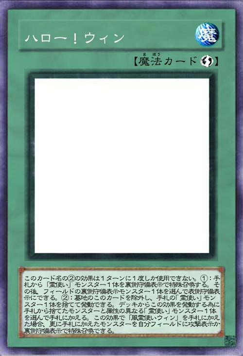 | このカード名の②の効果は1ターンに1度しか使用できない。①:手札から「霊使い」モンスター1体を裏側守備表示で特殊召喚する。その後、フィールドの裏側守備表示モンスター1体を選んで表側守備表示にできる。②:墓地のこのカードを除外し、手札の「霊使い」モンスター1体を捨てて発動できる。デッキからこの効果を発動する為に手札から捨てたモンスターと属性の異なる「霊使い」モンスター1体を選んで手札に加える。この効果で「風霊使いウィン」を手札に加えた場合、更に手札に加えたモンスターを自分フィールドに攻撃表示か裏側守備表示で特殊召喚できる。 | |||