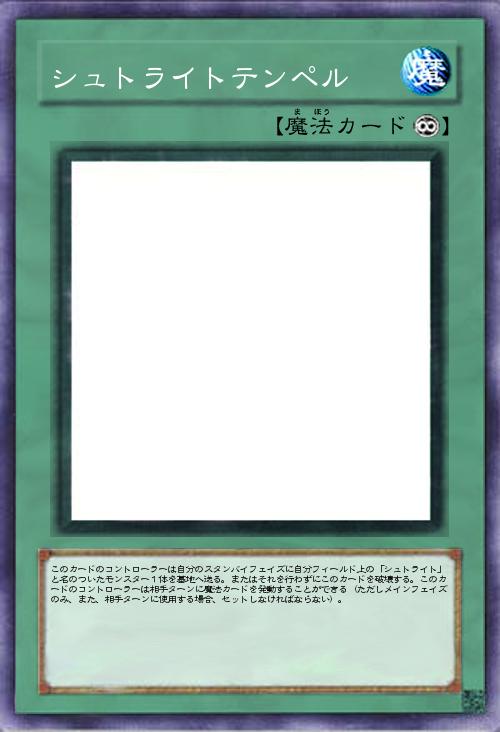 | このカードのコントローラーは自分のスタンバイフェイズに自分フィールド上の「シュトライト」と名のついたモンスター1体を墓地へ送る。またはそれを行わずにこのカードを破壊する。このカードのコントローラーは相手ターンに魔法カードを発動することができる(ただしメインフェイズのみ、また、相手ターンに使用する場合、セットしなければならない)。 | |||