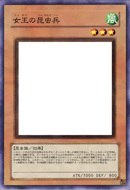 | このカード名の①②の効果はそれぞれ1ターンに1度しか使用できない。①:このカードが召喚した場合に発動できる。デッキからレベル7以上の昆虫族モンスター1体を手札に加える。②:このカードが昆虫族モンスターの効果を発動するためにリリースされた場合に発動できる。このカードを特殊召喚する。このターン、このカードはリリースできない。③:このカードが昆虫族モンスターと戦闘を行う場合、その戦闘で発生する自分への戦闘ダメージは代わりに相手が受ける。 | |||