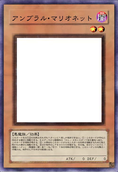 | このカード名の①②の効果はそれぞれ1ターンに1度しか使用できない。①:このカードが手札に存在する場合に発動できる。EXデッキから闇属性の「No.」Xモンスター1体を墓地へ送り、このカードを特殊召喚する。②:X素材のこのカードがXモンスターの効果を発動するために取り除かれた場合に発動できる。自分か相手のLPを3000回復する。その後、自分フィールドに「魂魄トークン」(悪魔族・闇・星1・攻/守?)1体を特殊召喚できる。このトークンの攻撃力・守備力は、相手のLPの半分の数値になる。 | |||