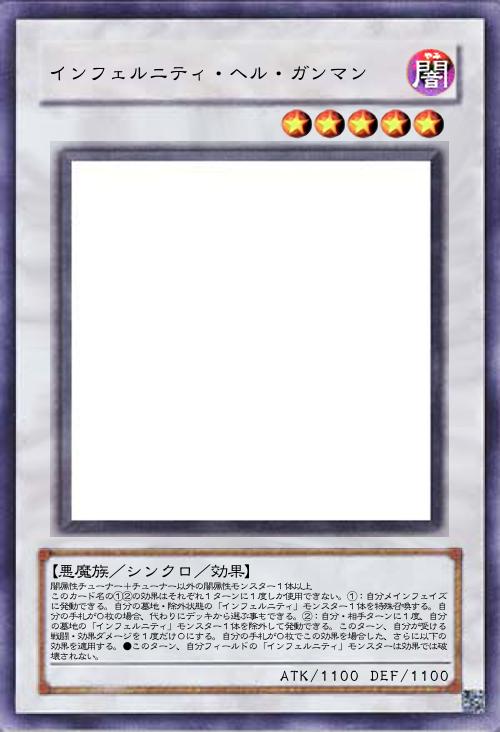 「来年《インフェルニティ・デス・ガンマン》がめでたくocg化されるみたいなので作ってみました。①②の効果はocg版《インフェルニティ・デス・ガンマン》の効果を元にしています。