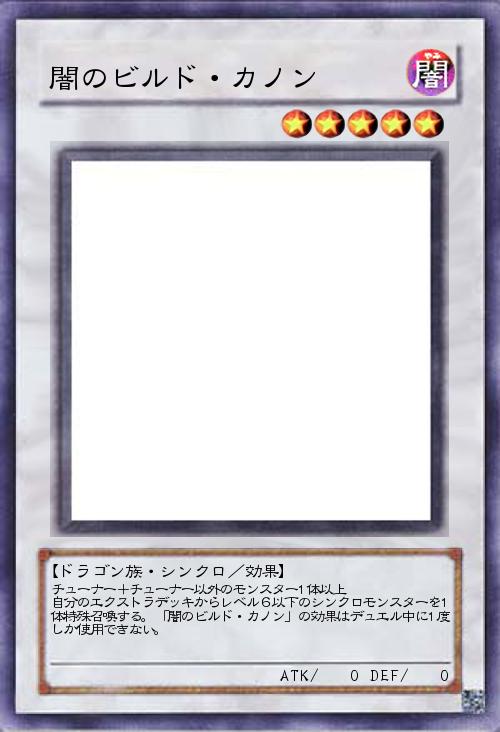 チューナー+チューナー以外のモンスター1体以上 自分のエクストラデッキからレベル6以下のシンクロモンスターを1体特殊召喚する。「闇のビルド・カノン」の効果はデュエル中に1度しか使用できない。 |