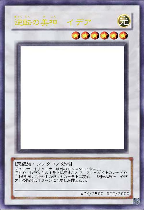 チューナー+チューナー以外のモンスター1体以上 手札を1枚デッキの1番上に戻すことで、フィールド上のカードを1枚選択して持ち主のデッキの一番上に戻す。「逆転の美神 イデア」の効果は1ターンに1度しか使えない。 |