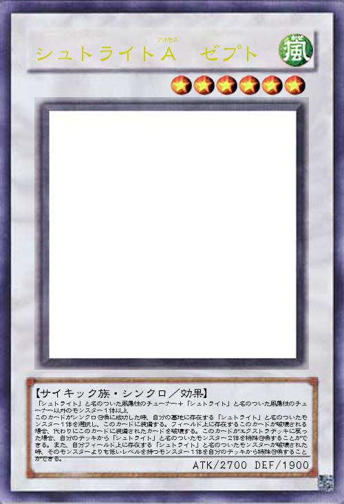 「シュトライト」と名のついた風属性のチューナー+「シュトライト」と名のついた風属性のチューナー以外のモンスター1体以上 このカードがシンクロ召喚に成功した時、自分の墓地に存在する「シュトライト」と名のついたモンスター1体を選択し、このカードに装備する。フィールド上に存在するこのカードが破壊される場合、代わりにこのカードに装備されたカードを破壊する。このカードがエクストラデッキに戻った場合、自分のデッキから「シュトライト」と名のついたモンスター2体を特殊召喚することができる。また、自分フィールド上に存在する「シュトライト」と名のついたモンスターが破壊された時、そのモンスターよりも低いレベルを持つモンスター1体を自分のデッキから特殊召喚することができる。 |