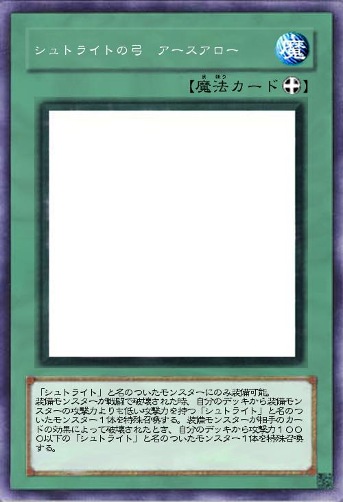 「シュトライト」と名のついたモンスターにのみ装備可能。 装備モンスターが戦闘で破壊された時、自分のデッキから装備モンスターの攻撃力よりも低い攻撃力を持つ「シュトライト」と名のついたモンスター1体を特殊召喚する。装備モンスターが相手のカードの効果によって破壊されたとき、自分のデッキから攻撃力1000以下の「シュトライト」と名のついたモンスター1体を特殊召喚する。 |