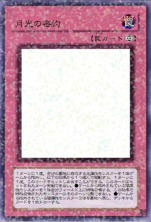 | 1ターンに1度、自分の墓地に存在する光属性モンスターを1体ゲームから除外し、以下の効果から1つ選んで発動する。1ターンに1度、このカードをセットしなおすことができる。このカードはセットされたターン発動できない。●ゲームから除外されている闇属性モンスターを1体自分フィールド上に特殊召喚する。この効果で特殊召喚されたモンスターはそのターン攻撃できない。●ゲームから除外されている闇属性モンスター2体を墓地へ戻し、デッキからカードを1枚ドローする。 | |||