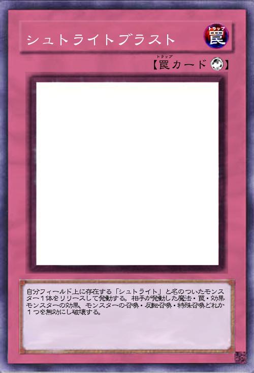 | 自分フィールド上に存在する「シュトライト」と名のついたモンスター1体をリリースして発動する。相手が発動した魔法・罠・効果モンスターの効果、モンスターの召喚・反転召喚・特殊召喚どれか1つを無効にし破壊する。 | |||