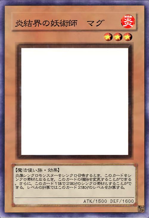 | 炎属シンクロモンスターをシンクロ召喚するとき、このカードをシンクロ素材となるとき、このカードの種族を変更することができる。さらに、このカード1体で2体分のシンクロ素材とすることができる。レベルの計算ではこのカード2体分のレベルを加算する。 | |||