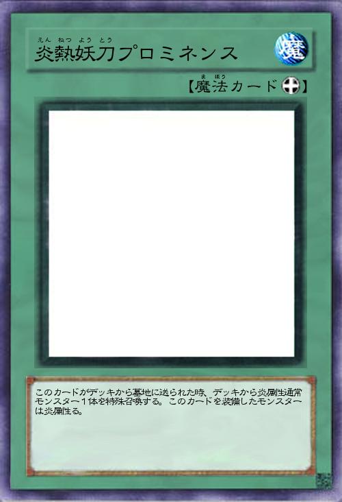 | このカードがデッキから墓地に送られた時、デッキから炎属性通常モンスター1体を特殊召喚する。このカードを装備したモンスターは炎属性る。 | |||