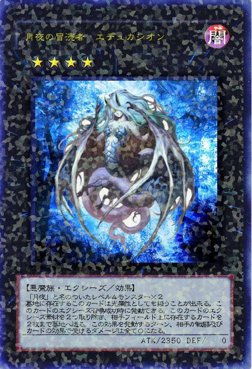 「月夜」と名のついたレベル4モンスター×2 墓地に存在するこのカードは光属性としても扱うことが出来る。このカードのエクシーズ召喚成功時に発動できる。このカードのエクシーズ素材を2つ取り除き、相手フィールド上に存在するカードを2枚まで墓地へ送る。この効果を発動するターン、相手が戦闘及びカードの効果で受けるダメージは全て0になる。 |
