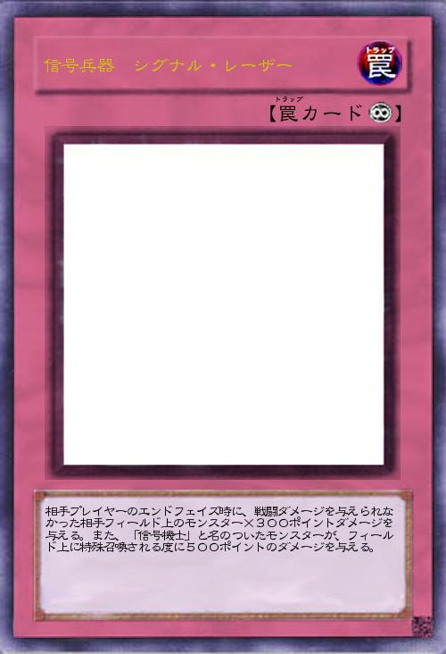 | 相手プレイヤーのエンドフェイズ時に、戦闘ダメージを与えられなかった相手フィールド上のモンスター×300ポイントダメージを与える。また、「信号機士」と名のついたモンスターが、フィールド上に特殊召喚される度に500ポイントのダメージを与える。 | |||