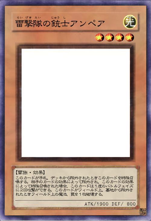 | このカードが手札、デッキから除外されたときこのカードを特殊召喚する。相手のカードの効果によって除外され、このカードの効果によって特殊召喚された場合、このカードは1度のバトルフェイズに2回攻撃ができる。このカードがフィールド上、墓地から除外されたときフィールド上の魔法、罠を1枚破壊する。 | |||