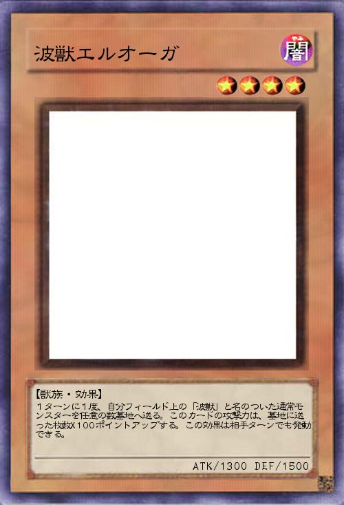 | 1ターンに1度、自分フィールド上の「波獣」と名のついた通常モンスターを任意の数墓地へ送る。このカードの攻撃力は、墓地に送った枚数X100ポイントアップする。この効果は相手ターンでも発動できる。 | |||