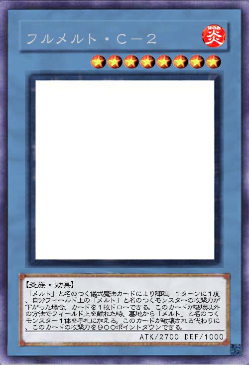 | 「メルト」と名のつく儀式魔法カードにより降臨。1ターンに1度、自分フィールド上の「メルト」と名のつくモンスターの攻撃力が下がった場合、カードを1枚ドローできる。このカードが破壊以外の方法でフィールド上を離れた時、墓地から「メルト」と名のつくモンスター1体を手札に加える。このカードが破壊される代わりに、このカードの攻撃力を900ポイントダウンできる。 | |||