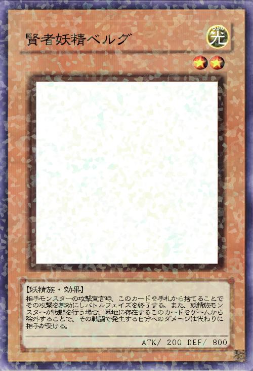 | 相手モンスターの攻撃宣言時、このカードを手札から捨てることでその攻撃を無効にしバトルフェイズを終了する。また、妖精族モンスターが戦闘を行う場合、墓地に存在するこのカードをゲームから除外することで、その戦闘で発生する自分へのダメージは代わりに相手が受ける。 | |||