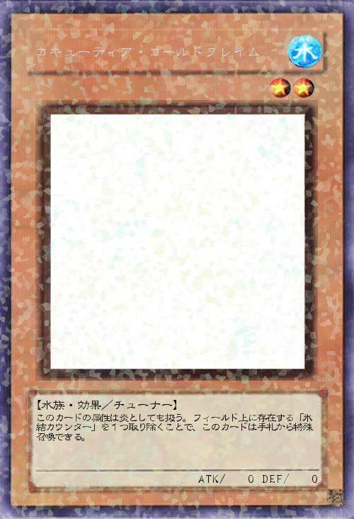 | このカードの属性は炎としても扱う。フィールド上に存在する「氷結カウンター」を1つ取り除くことで、このカードは手札から特殊召喚できる。 | |||