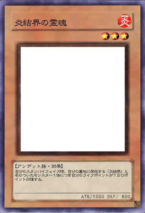 | 自分のスタンバイフェイズ時、自分の墓地に存在する「炎結界」と名のついたモンスター1体につき自分のライフポイントが150ポイント回復する。 | |||